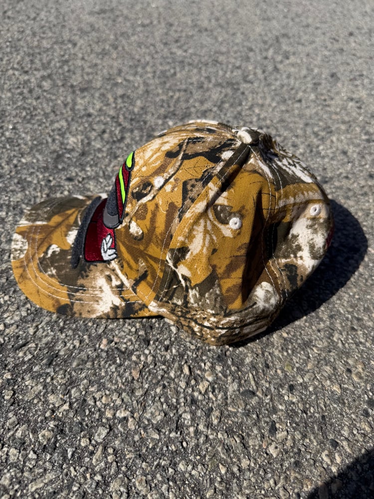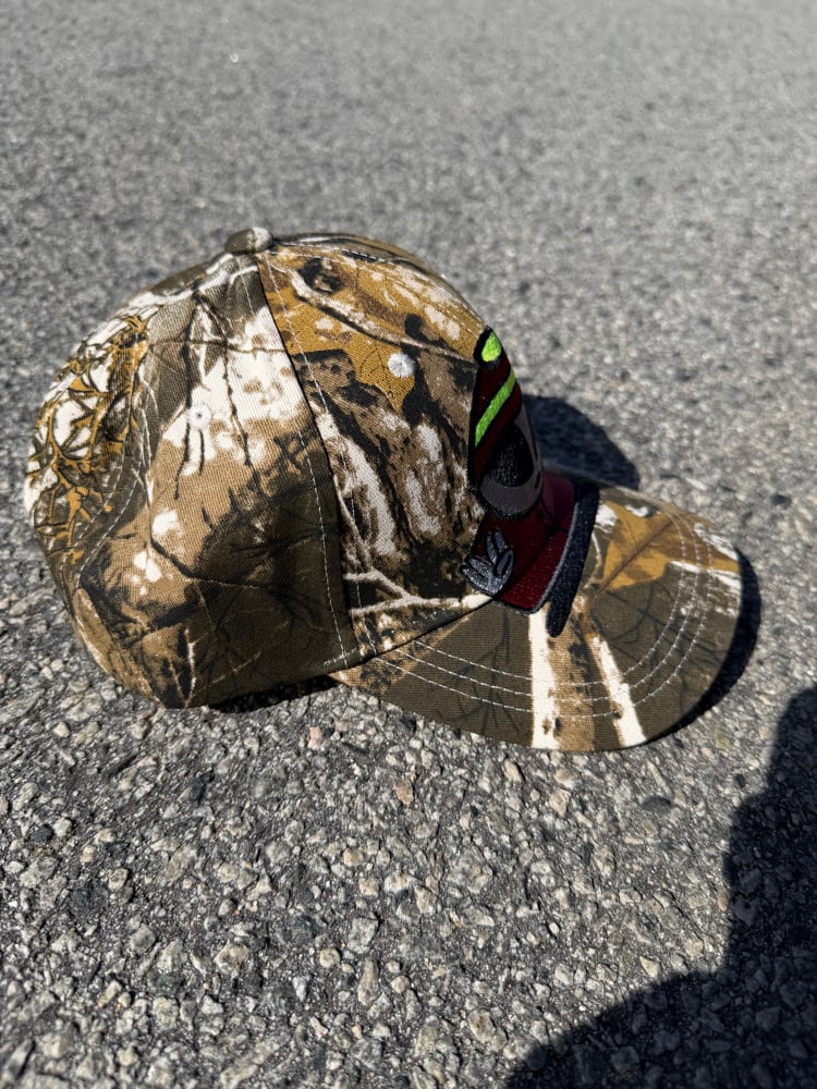 Produced in small batches, this is the alien-man hat using Real Tree camo, by ALL ANGELS ARE ALIENS.