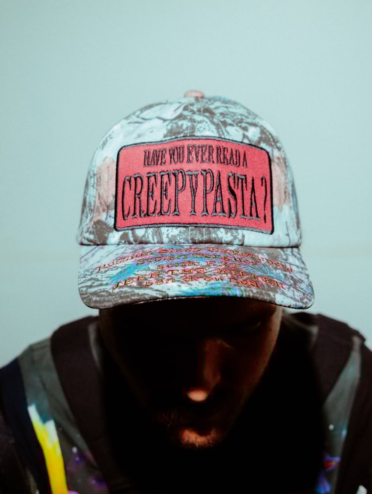 • CREEPYPASTA embroidery on front, embroidery also on brim, and back